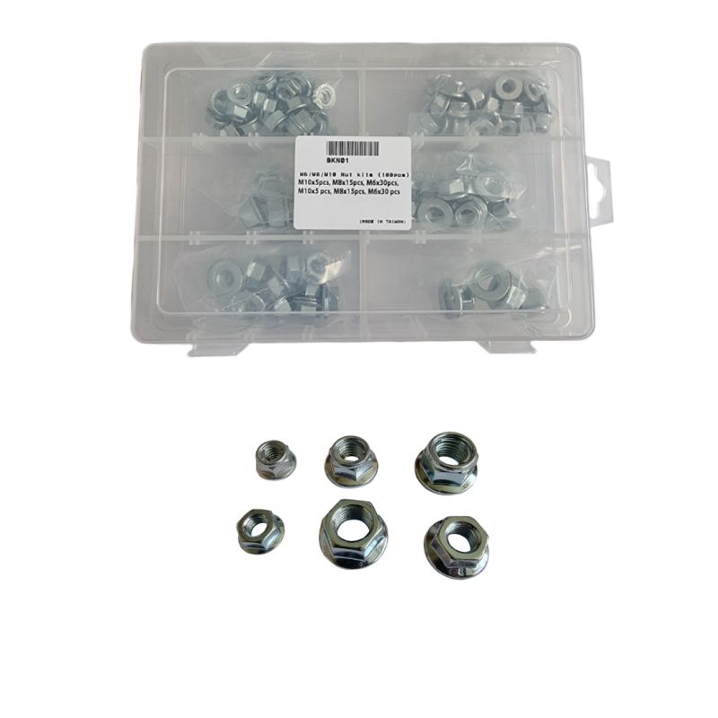 Komplet (Zestaw) Nakrętek Kołnierzowych Zwykłych i Samokontrujących M6/M8/M10 (100 Szt.) | Accel