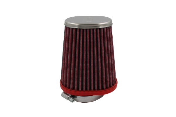 Filtry stożkowe BMC do bezpośredniego wlotu powietrza można zamontować w większości typów silników po usunięciu oryginalnej osłony filtra powieta. Filtry stożkowe BMC do bezpośredniego wlotu powietrza są produkowane z charakterystycznej czerwonej gumy, która sprawia, że połączenie wlotu jest szczególnie odporne zarówno na obciążenia silnika, jak i na ciepło, bez ulegania odkształceniom spowodowanym wysoką temperaturą. Specjalna siatka filtracyjna pozwala na produkcję filtrów o mocy do 700 KM bez problemów z odkształcaniem się filtra. Filtry stożkowe BMC są dostępne w dwóch wersjach: SA (Single Air) z prostym bocznym przepływem powietrza – dostępne w wersjach z górną częścią z włókna węglowego, metalową i plastikową; TW (Twin Air) z centralnym i bocznym przepływem powietrza – dostępne w wersjach z górną częścią metalową i plastikową. Filtry stożkowe BMC do bezpośredniego wlotu powietrza mogą być montowane w większości typów silników po usunięciu oryginalnego airboxa. Filtry stożkowe BMC do bezpośredniego wlotu powietrza są produkowane z charakterystycznej czerwonej gumy, dzięki której połączenie wlotu powietrza jest szczególnie odporne na obciążenia silnika i wysoką temperaturę, nie ulegając deformacjom spowodowanym wysoką temperaturą. Specjalna siatka filtrująca pozwala na produkcję filtrów o mocy do 700 KM bez problemów związanych z odkształceniem filtra. Filtry stożkowe BMC są dostępne w dwóch wersjach: SA (Single Air) z prostym bocznym przepływem powietrza – dostępne w wersjach z blatem węglowym, blatem metalowym i blatem z tworzywa sztucznego; TW (Twin Air) z centralnym i bocznym przepływem powietrza – dostępne w wersjach z blatem metalowym i blatem z tworzywa sztucznego. Właściwości techniczne Filtry pojedyncze Kołnierze 1 Długość kołnierza (mm) 18 Średnica wewnętrzna kołnierza ø1 (mm) 55 Wysokość – H2 (mm) 138 Wysokość – H1 (mm) 120 Długość zewnętrzna podstawy A (mm) 102 Szerokość zewnętrzna podstawy B (mm) 75 Długość odsadzenia (mm) 9.5 Szerokość odsunięcia C (mm) 0 Materiał wierzchu – wykończenie Metal