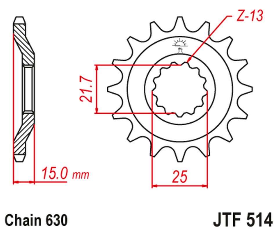 Zębatka napędowa marki JT (nr kat. JTF514.15). Zębatka napędowa wykonana z hartowanej stali o wysokiej odporności na zużycie.