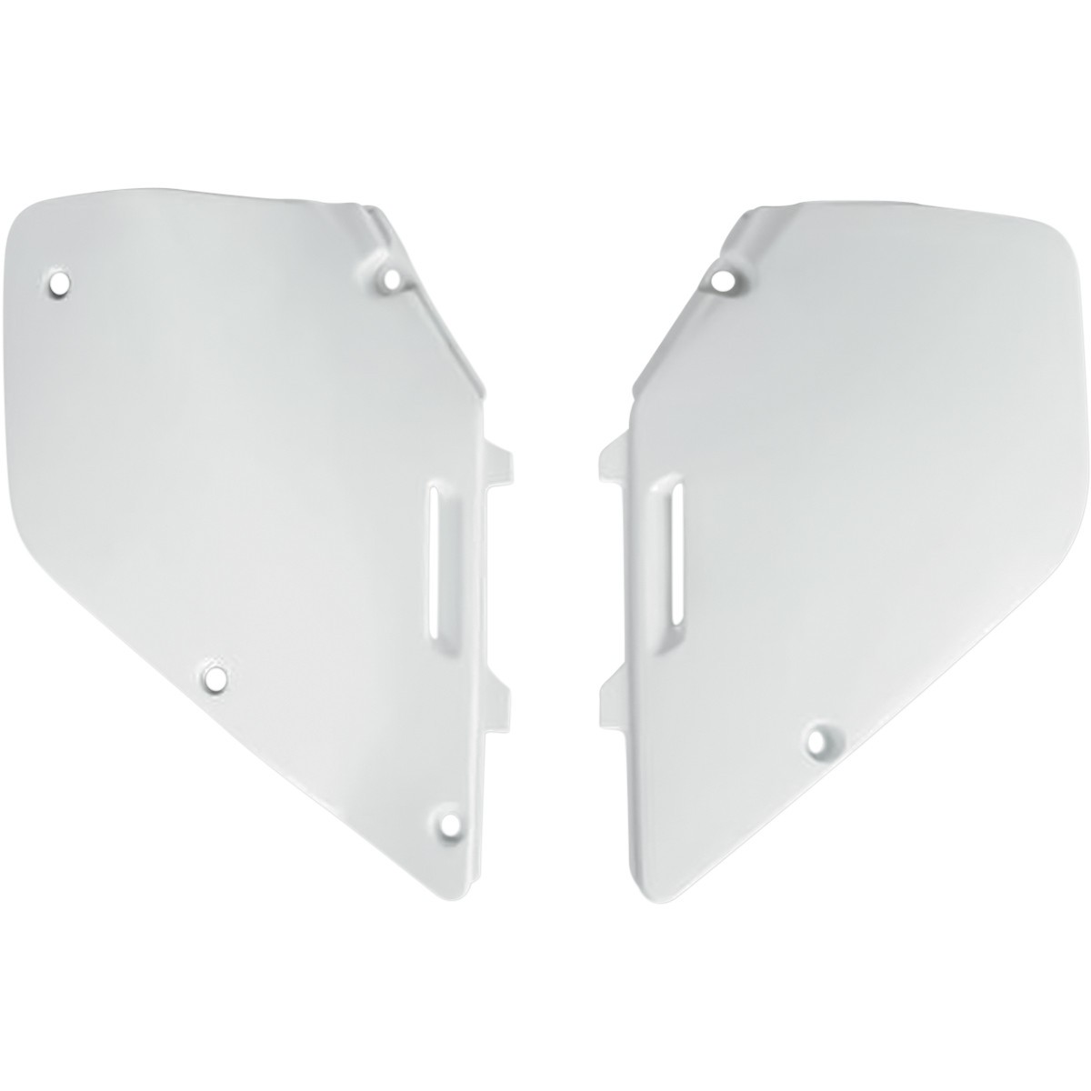 Boczki tylne – SUZUKI RM 125/250 KOLOR BIAŁY (1996-2000) marki UFO to element plastikowy nadwozia do motocykli i pojazdów jednośladowych, testowane pod kątem wytrzymałości i bezpieczeństwa.