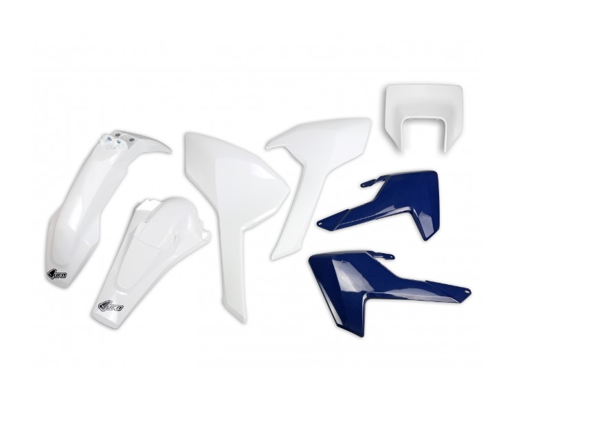 Komplet Plastików Husqvarna TX/TE/Fe ’17-’19 z Osłoną Lampy Kolor OEM (Biały/Niebieski) (Hu621E999) | UFO